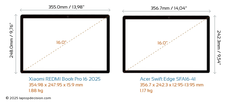 Thunderbolt REDMI Book Pro 16 2025 está equipado con un puerto Thunderbolt 4. Swift Edge SFA16-41 no tiene puerto Thunderbolt.