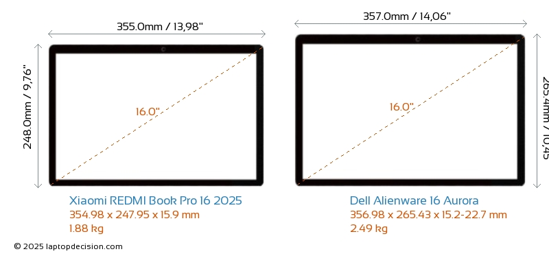 HDMIAmbos REDMI Book Pro 16 2025 y Alienware 16 Aurora cuentan con un puerto HDMI (1x HDMI 2.1) para conectar a monitores externos.