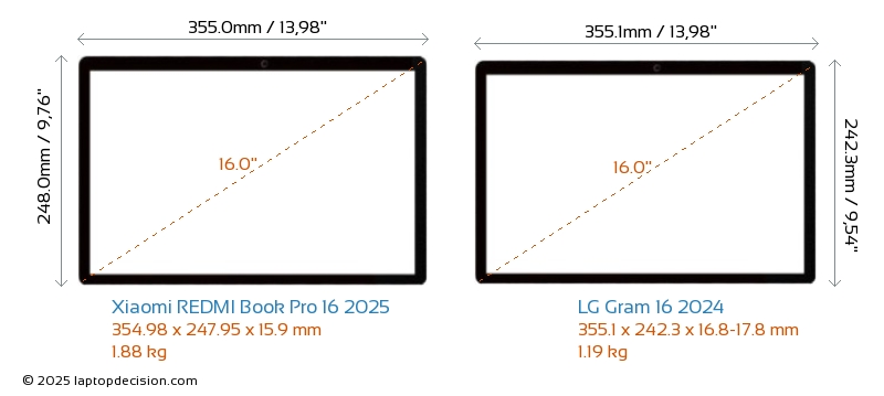 USBAmbos REDMI Book Pro 16 2025 y Gram 16 2024 cuentan con 2x USB 3.2 puertos USB-A.Ambos REDMI Book Pro 16 2025 y Gram 16 2024 cuentan con 2x USB 4.0 puertos USB Type-C.