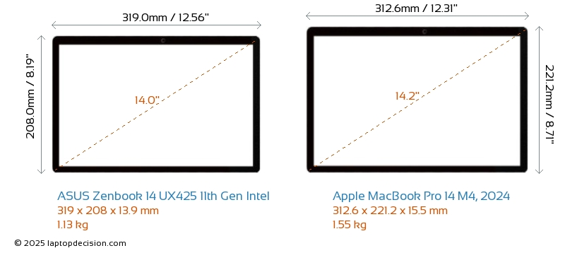 ThunderboltLes deux Zenbook 14 UX425 11th Gen Intel et MacBook Pro 14 M4, 2024 sont équipés de Thunderbolt 4 ports.
