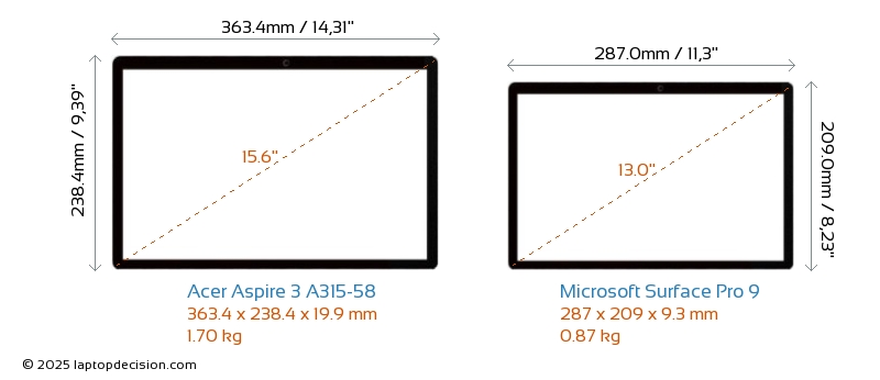 HDMIAspire 3 A315-58 dispose d'un port HDMI (1x HDMI 1.4) pour se connecter à des moniteurs externes. Surface Pro 9 n'a pas de port HDMI.