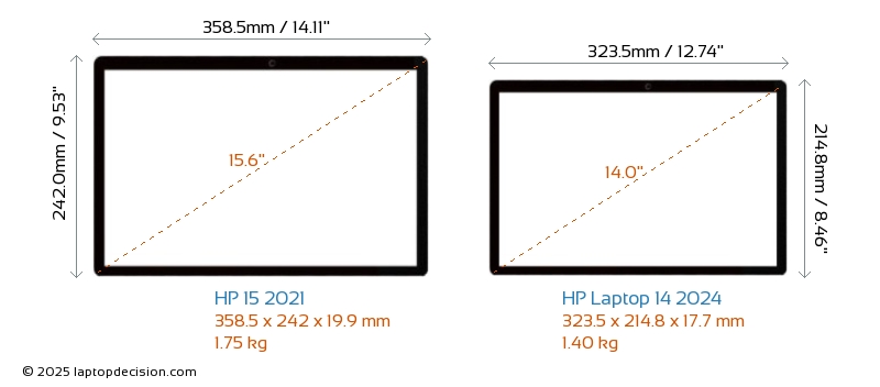 USBLes deux 15 2021 et Laptop 14 2024 disposent de 2x USB 3.2 ports USB-A.Les deux 15 2021 et Laptop 14 2024 disposent de 1x USB 3.2 ports USB Type-C.