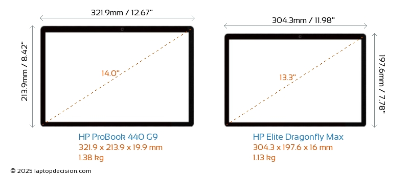 ThunderboltElite Dragonfly Max est équipé d'un port Thunderbolt 4. ProBook 440 G9 n'a pas de port Thunderbolt.