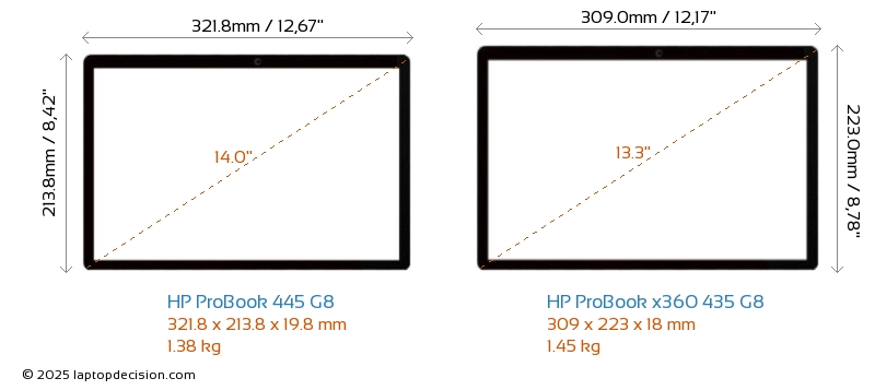 USBLes deux ProBook 445 G8 et ProBook x360 435 G8 disposent de ports USB-A. ProBook 445 G8 dispose de 3x USB 3.2 ports USB-A, tandis que ProBook x360 435 G8 en dispose de 2x USB 3.2.Les deux ProBook 445 G8 et ProBook x360 435 G8 disposent de 1x USB 3.2 ports USB Type-C.