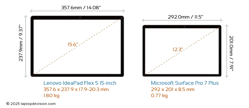 HDMIIdeaPad Flex 5 15-inch dispose d'un port HDMI (1x HDMI 1.4) pour se connecter à des moniteurs externes. Surface Pro 7 Plus n'a pas de port HDMI.