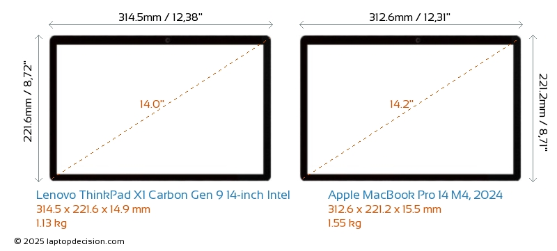 ThunderboltLes deux ThinkPad X1 Carbon Gen 9 14-inch Intel et MacBook Pro 14 M4, 2024 sont équipés de Thunderbolt 4 ports.