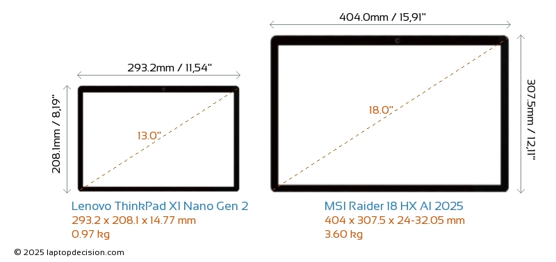 HDMI Raider 18 HX AI 2025 dispose d'un port HDMI (1x HDMI 2.1) pour se connecter à des moniteurs externes. ThinkPad X1 Nano Gen 2 n'a pas de port HDMI.