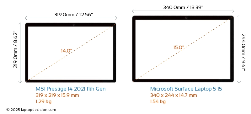 HDMINeither Prestige 14 2021 11th Gen nor Surface Laptop 5 15 has an HDMI port for connecting to external monitors. Aucun des deux Prestige 14 2021 11th Gen ni Surface Laptop 5 15 n'a de port HDMI pour se connecter à des moniteurs externes.