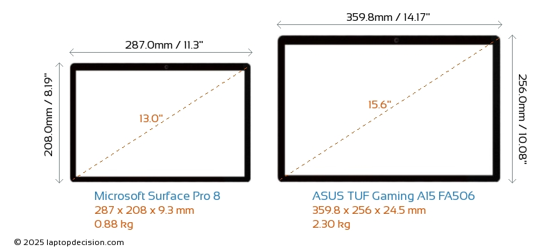 HDMITUF Gaming A15 FA506 dispose d'un port HDMI (1x HDMI 2.0) pour se connecter à des moniteurs externes. Surface Pro 8 n'a pas de port HDMI.