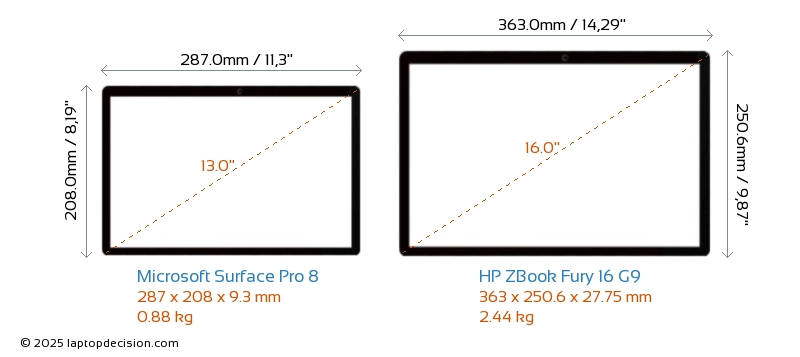 HDMIZBook Fury 16 G9 dispose d'un port HDMI (1x HDMI 2.1) pour se connecter à des moniteurs externes. Surface Pro 8 n'a pas de port HDMI.