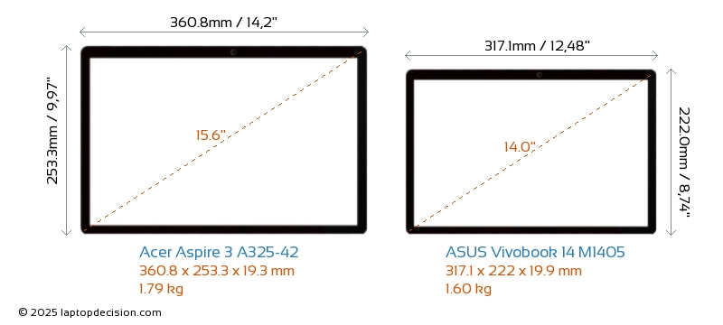 HDMILes deux Aspire 3 A325-42 et Vivobook 14 M1405 disposent d'un port HDMI (1x HDMI 1.4) pour se connecter à des moniteurs externes.