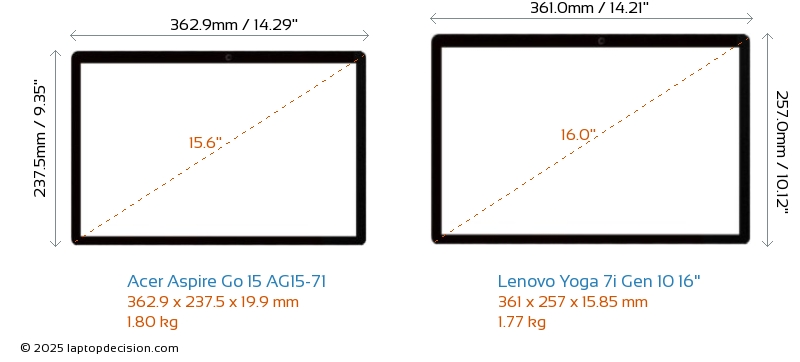 Wifi Yoga 7i Gen 10 16" dispose d'une norme Wi-Fi plus avancée v7, offrant des connexions sans fil plus rapides et fiables par rapport à Aspire Go 15 AG15-71 (v6).