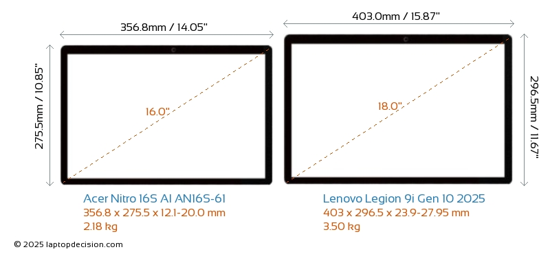 Wifi Legion 9i Gen 10 2025 dispose d'une norme Wi-Fi plus avancée v7, offrant des connexions sans fil plus rapides et fiables par rapport à Nitro 16S AI AN16S-61 (v6E).