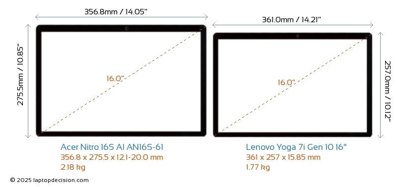 Wifi Yoga 7i Gen 10 16" dispose d'une norme Wi-Fi plus avancée v7, offrant des connexions sans fil plus rapides et fiables par rapport à Nitro 16S AI AN16S-61 (v6E).