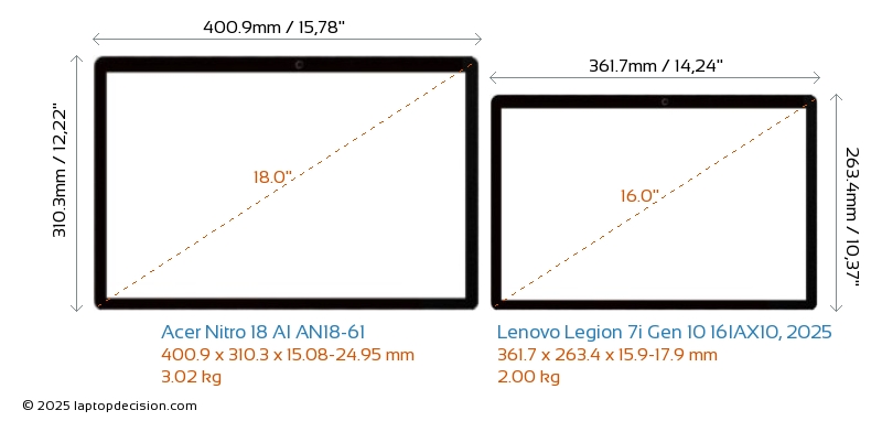 HDMILes deux Nitro 18 AI AN18-61 et Legion 7i Gen 10 16IAX10, 2025 disposent d'un port HDMI (1x HDMI 2.1) pour se connecter à des moniteurs externes.