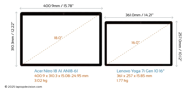 Wifi Yoga 7i Gen 10 16" dispose d'une norme Wi-Fi plus avancée v7, offrant des connexions sans fil plus rapides et fiables par rapport à Nitro 18 AI AN18-61 (v6E).