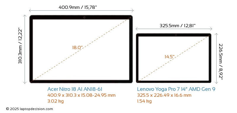 HDMILes deux Nitro 18 AI AN18-61 et Yoga Pro 7 14" AMD Gen 9 disposent d'un port HDMI (1x HDMI 2.1) pour se connecter à des moniteurs externes.