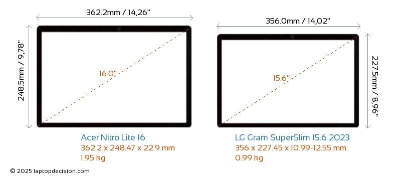 Prise AudioLes deux Nitro Lite 16 et Gram SuperSlim 15.6 2023 sont équipés d'une prise audio de 3,5 mm, permettant une connexion sans interruption aux écouteurs et haut-parleurs.