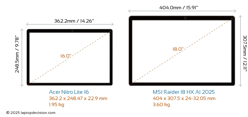 HDMILes deux Nitro Lite 16 et Raider 18 HX AI 2025 disposent d'un port HDMI (1x HDMI 2.1) pour se connecter à des moniteurs externes.