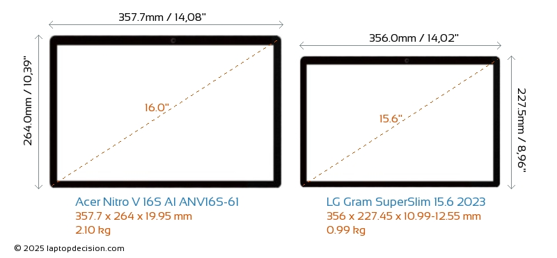 Prise AudioLes deux Nitro V 16S AI ANV16S-61 et Gram SuperSlim 15.6 2023 sont équipés d'une prise audio de 3,5 mm, permettant une connexion sans interruption aux écouteurs et haut-parleurs.