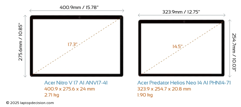 HDMILes deux Nitro V 17 AI ANV17-41 et Predator Helios Neo 14 AI PHN14-71 disposent d'un port HDMI (1x HDMI 2.1) pour se connecter à des moniteurs externes.