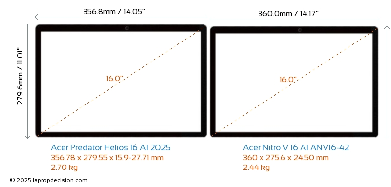 Thunderbolt Predator Helios 16 AI 2025 est équipé d'un port Thunderbolt 5. Nitro V 16 AI ANV16-42 n'a pas de port Thunderbolt.