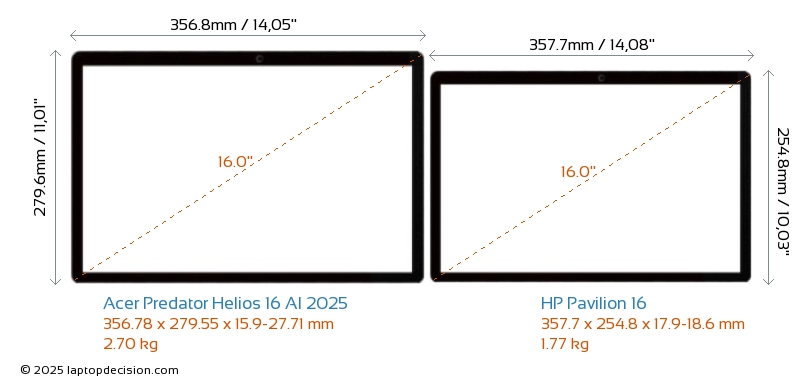 HDMILes deux Predator Helios 16 AI 2025 et Pavilion 16 disposent d'un port HDMI (1x HDMI 2.1) pour se connecter à des moniteurs externes.