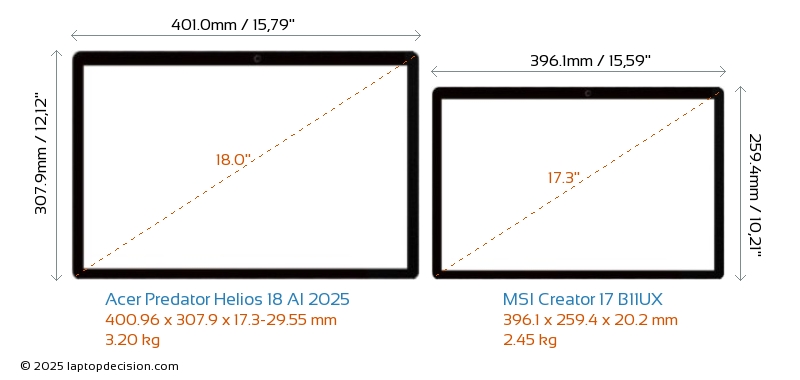 HDMILes deux Predator Helios 18 AI 2025 et Creator 17 B11UX disposent d'un port HDMI (1x HDMI 2.1) pour se connecter à des moniteurs externes.