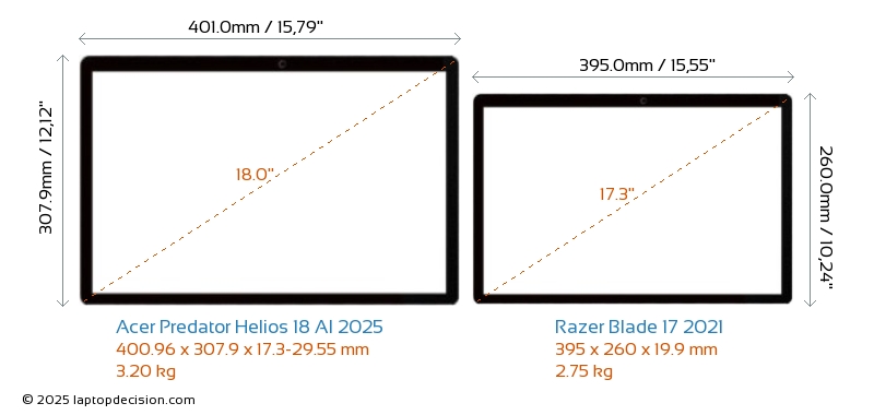 HDMILes deux Predator Helios 18 AI 2025 et Blade 17 2021 disposent d'un port HDMI (1x HDMI 2.1) pour se connecter à des moniteurs externes.