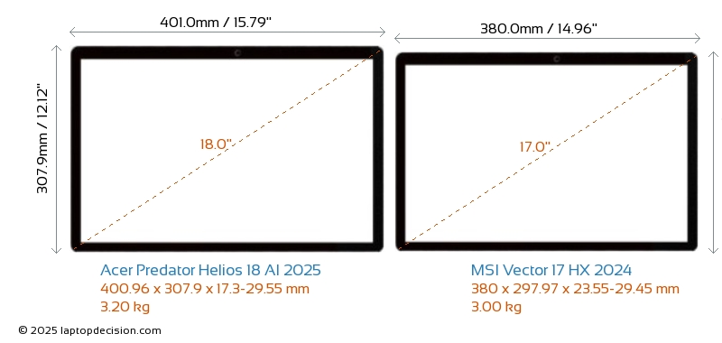 HDMILes deux Predator Helios 18 AI 2025 et Vector 17 HX 2024 disposent d'un port HDMI (1x HDMI 2.1) pour se connecter à des moniteurs externes.