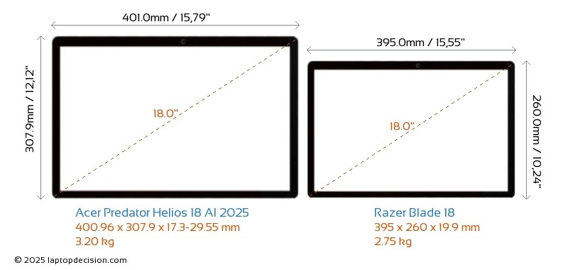 USBLes deux Predator Helios 18 AI 2025 et Blade 18 disposent de 3x USB 3.2 ports USB-A.Les deux Predator Helios 18 AI 2025 et Blade 18 disposent de 2x USB 4.0 ports USB Type-C.