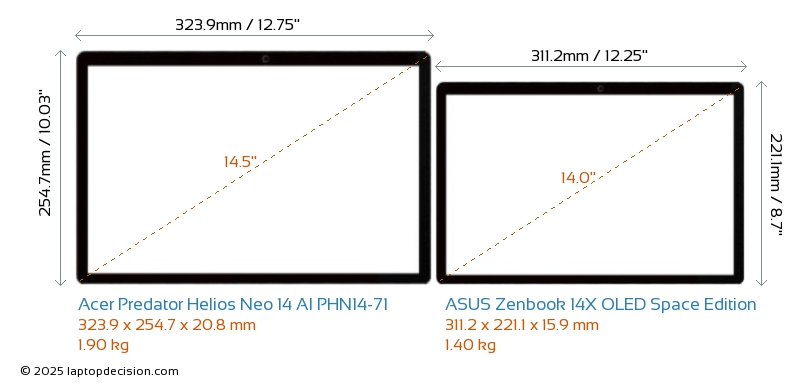 Prise AudioLes deux Predator Helios Neo 14 AI PHN14-71 et Zenbook 14X OLED Space Edition sont équipés d'une prise audio de 3,5 mm, permettant une connexion sans interruption aux écouteurs et haut-parleurs.