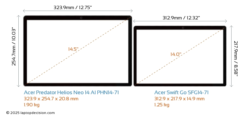 HDMILes deux Predator Helios Neo 14 AI PHN14-71 et Swift Go SFG14-71 disposent d'un port HDMI (1x HDMI 2.1) pour se connecter à des moniteurs externes.