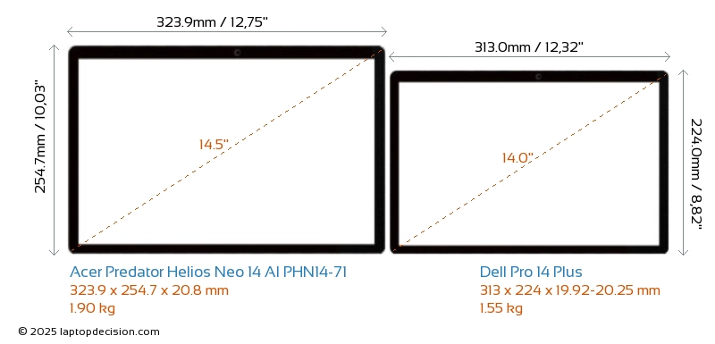 USBLes deux Predator Helios Neo 14 AI PHN14-71 et Pro 14 Plus disposent de 2x USB 3.2 ports USB-A.Les deux Predator Helios Neo 14 AI PHN14-71 et Pro 14 Plus disposent de ports USB Type-C. Predator Helios Neo 14 AI PHN14-71 dispose de 2x USB 3.2 ports USB Type-C, tandis que Pro 14 Plus en dispose de 2x USB 4.0.