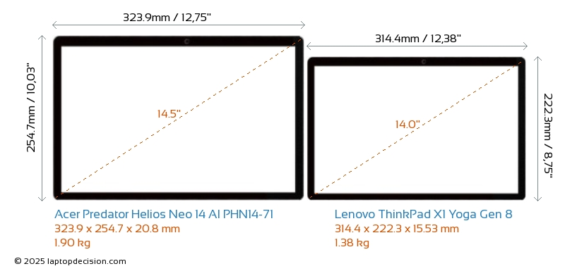 Prise AudioLes deux Predator Helios Neo 14 AI PHN14-71 et ThinkPad X1 Yoga Gen 8 sont équipés d'une prise audio de 3,5 mm, permettant une connexion sans interruption aux écouteurs et haut-parleurs.
