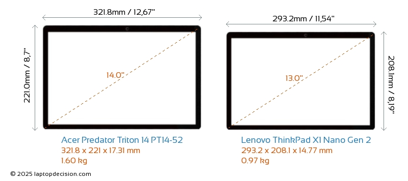 ThunderboltLes deux Predator Triton 14 PT14-52 et ThinkPad X1 Nano Gen 2 sont équipés de Thunderbolt 4 ports.