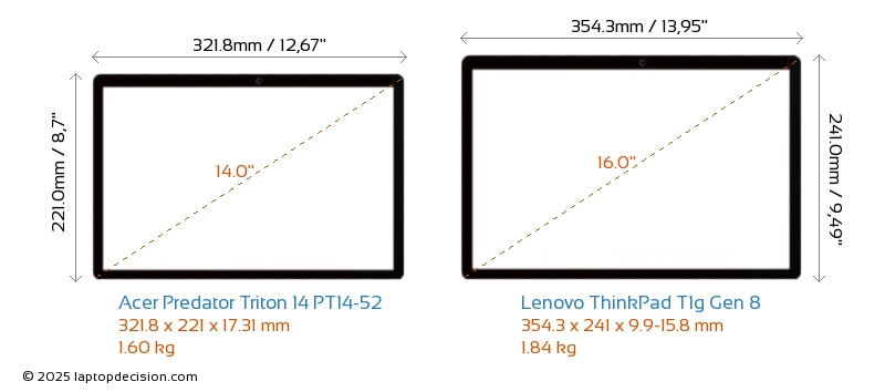 HDMILes deux Predator Triton 14 PT14-52 et ThinkPad T1g Gen 8 disposent d'un port HDMI (1x HDMI 2.1) pour se connecter à des moniteurs externes.