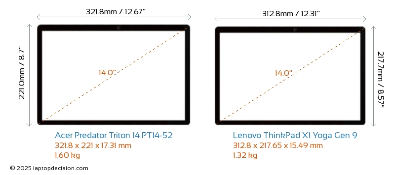 ThunderboltLes deux Predator Triton 14 PT14-52 et ThinkPad X1 Yoga Gen 9 sont équipés de Thunderbolt 4 ports.