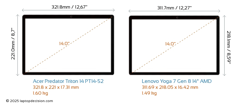 ThunderboltLes deux Predator Triton 14 PT14-52 et Yoga 7 Gen 8 14" AMD sont équipés de Thunderbolt 4 ports.