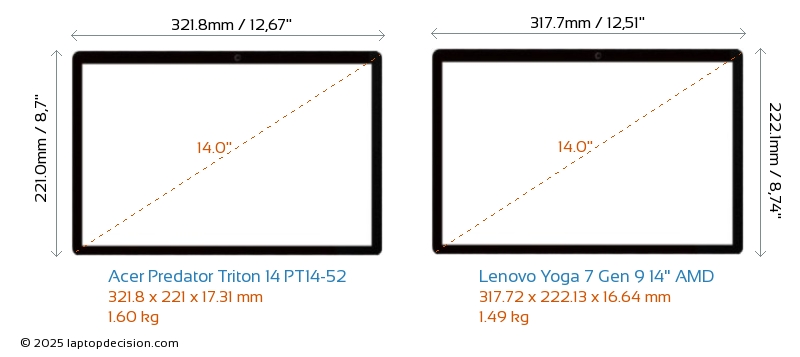 ThunderboltLes deux Predator Triton 14 PT14-52 et Yoga 7 Gen 9 14" AMD sont équipés de Thunderbolt 4 ports.