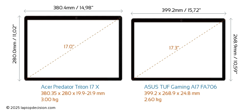 Thunderbolt Predator Triton 17 X est équipé d'un port Thunderbolt 4. TUF Gaming A17 FA706 n'a pas de port Thunderbolt.