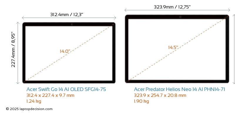 HDMILes deux Swift Go 14 AI OLED SFG14-75 et Predator Helios Neo 14 AI PHN14-71 disposent d'un port HDMI (1x HDMI 2.1) pour se connecter à des moniteurs externes.