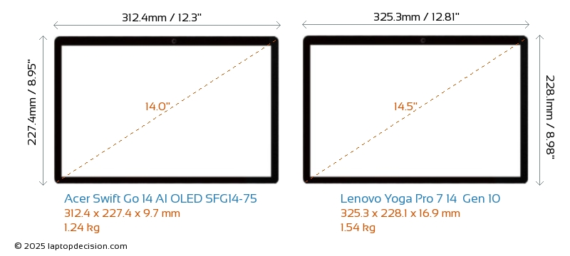 USBLes deux Swift Go 14 AI OLED SFG14-75 et Yoga Pro 7 14 Gen 10 disposent de 2x USB 3.2 ports USB-A.Les deux Swift Go 14 AI OLED SFG14-75 et Yoga Pro 7 14 Gen 10 disposent de 2x USB 4.0 ports USB Type-C.