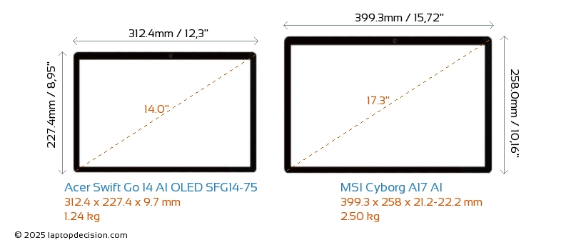 HDMILes deux Swift Go 14 AI OLED SFG14-75 et Cyborg A17 AI disposent d'un port HDMI (1x HDMI 2.1) pour se connecter à des moniteurs externes.