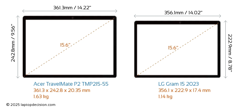USBLes deux TravelMate P2 TMP215-55 et Gram 15 2023 disposent de 2x USB 3.2 ports USB-A.Les deux TravelMate P2 TMP215-55 et Gram 15 2023 disposent de 2x USB 4.0 ports USB Type-C.