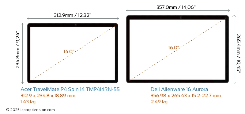 USBLes deux TravelMate P4 Spin 14 TMP414RN-55 et Alienware 16 Aurora disposent de 2x USB 3.2 ports USB-A.Les deux TravelMate P4 Spin 14 TMP414RN-55 et Alienware 16 Aurora disposent de 2x USB 4.0 ports USB Type-C.