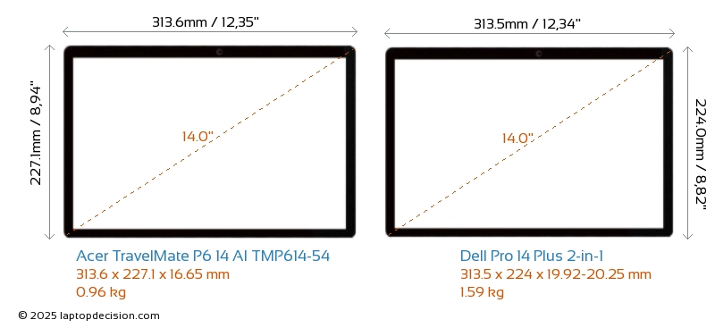 USBLes deux TravelMate P6 14 AI TMP614-54 et Pro 14 Plus 2-in-1 disposent de 2x USB 3.2 ports USB-A.Les deux TravelMate P6 14 AI TMP614-54 et Pro 14 Plus 2-in-1 disposent de 2x USB 4.0 ports USB Type-C.
