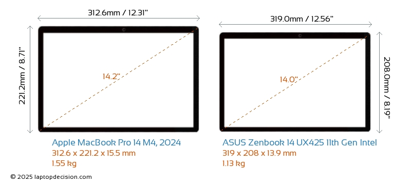 ThunderboltLes deux MacBook Pro 14 M4, 2024 et Zenbook 14 UX425 11th Gen Intel sont équipés de Thunderbolt 4 ports.