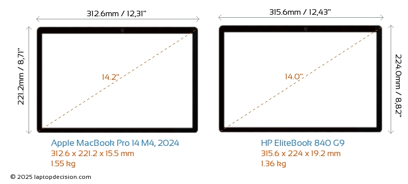 ThunderboltLes deux MacBook Pro 14 M4, 2024 et EliteBook 840 G9 sont équipés de Thunderbolt 4 ports.