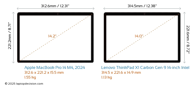 ThunderboltLes deux MacBook Pro 14 M4, 2024 et ThinkPad X1 Carbon Gen 9 14-inch Intel sont équipés de Thunderbolt 4 ports.